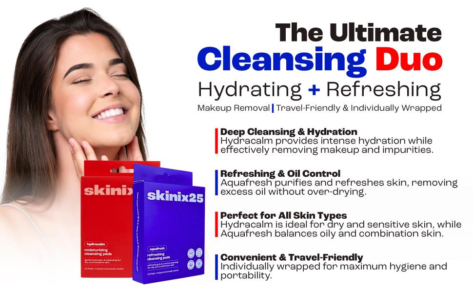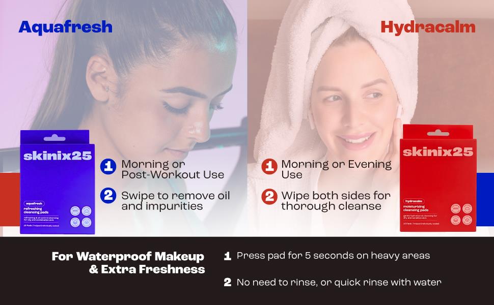 skinix25 Hydrocalm & Aquafresh Cleansing Pads 2 Boxes (20 Pads)