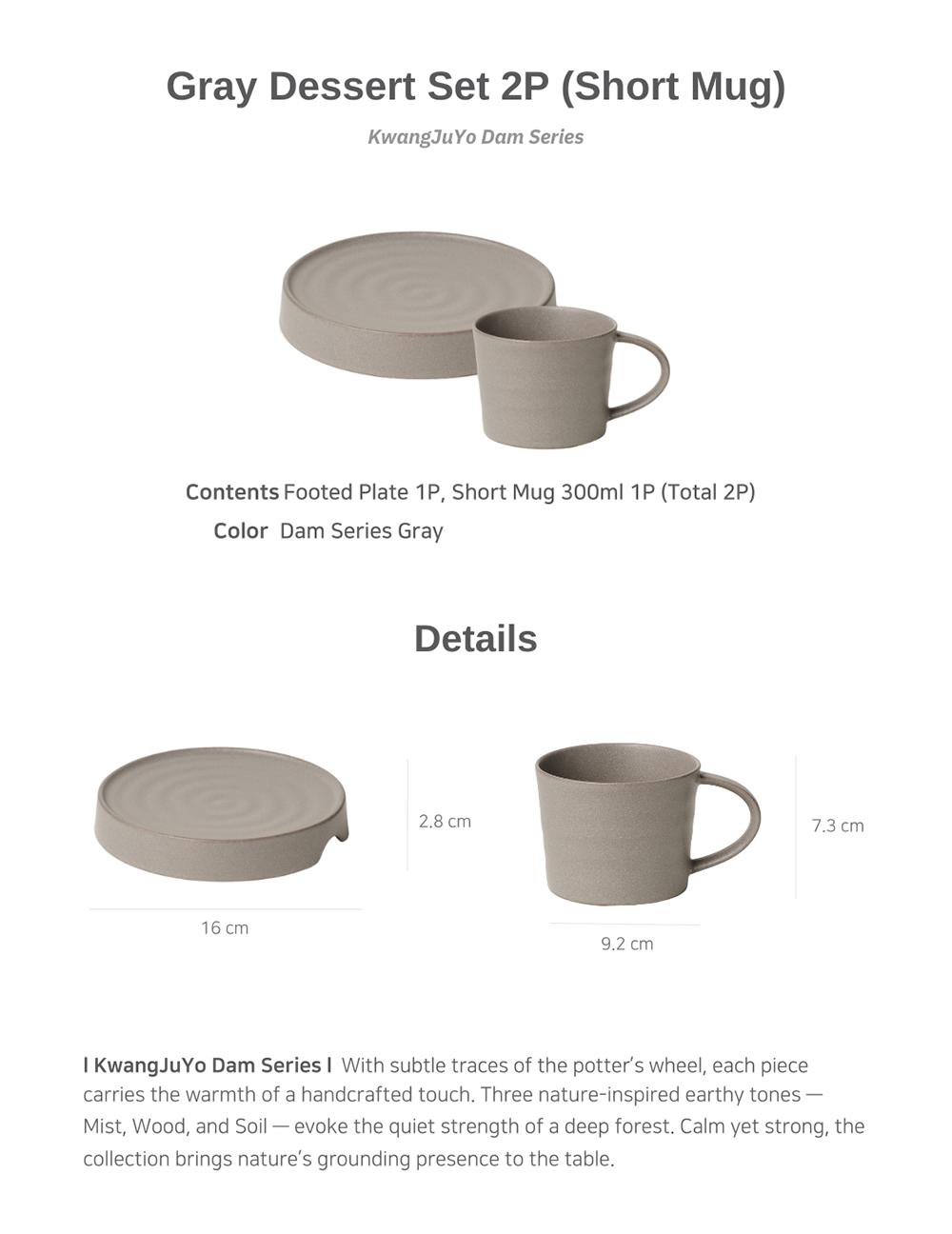 Kwangjuyo Dam Series Gray Dessert Set 2P (Short Mug)