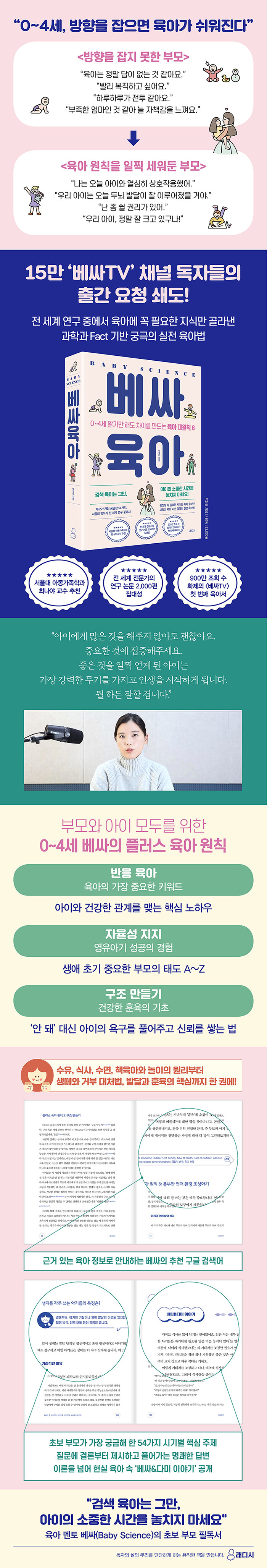 15¸¸ ºÎ¸ðµéÀÇ ¿·ÄÇÑ ÁöÁö¸¦ ¹ÞÀ¸¸ç »õ·Î¿î À°¾Æ ¸àÅä·Î ÀÚ¸®¸Å±èÇÑ ¡®º£½ÎTV¡¯ÀÇ ¹ÚÁ¤Àº ÀúÀÚ°¡ ¿À·£ Áغñ ³¡¿¡ ¡®0~4¼¼ ºÎ¸ð°¡ ²À ¾Ë¾Æ¾ß ÇÒ À°¾Æ Áöħ¼¡¯ ¡ºº£½ÎÀ°¾Æ¡»¸¦ Ãâ°£Çß´Ù. ±×´Â Àü¹®°¡°¡ ÀÎÁ¤ÇÒ Á¤µµ·Î öÀúÈ÷ °ËÁõÇØ³½ °úÇÐ ±â¹ÝÀÇ °í±Þ À°¾Æ Áö½Ä¸¸À» °ñ¶ó ¼Ò°³ÇÏ´Â °ÍÀ¸·Î À¯¸íÇÏ´Ù. ¹ü¶÷ÇÏ´Â À°¾Æ Á¤º¸ ¼Ó¿¡¼ °¥ÇǸ¦ ÀâÁö ¸øÇÏ´Â ºÎ¸ðµéÀÇ Áú¹®¿¡ ´äº¯Çϱâ À§ÇØ Àü ¼¼°è Àü¹®°¡ÀÇ ³í¹®À» ½Éµµ ±í°Ô ¿¬±¸Çß´Ù. ¶ÇÇÑ ±¹³»¿Ü ±³¼ö ¹× ÁÖ¿ä ±â°ü¿¡ Á÷Á¢ ÀÚ¹®À» ±¸ÇÑ ³»¿ëÀ» °øÀ¯Çϰí, ÇØ¿Ü Àü¹®°¡¿Í ¾Æ±âÀÇ ÀÌÁß ¾ð¾î ¹ß´Þ¿¡ °üÇÑ ¿þºñ³ª¸¦ ÁÖÃÖÇÏ´Â µî ´©±¸µµ µû¶ó¿Ã ¼ö ¾øÀ» ¼öÁØÀÇ À°¾Æ ÄÜÅÙÃ÷¸¦ ¸¸µé¾ú´Ù.