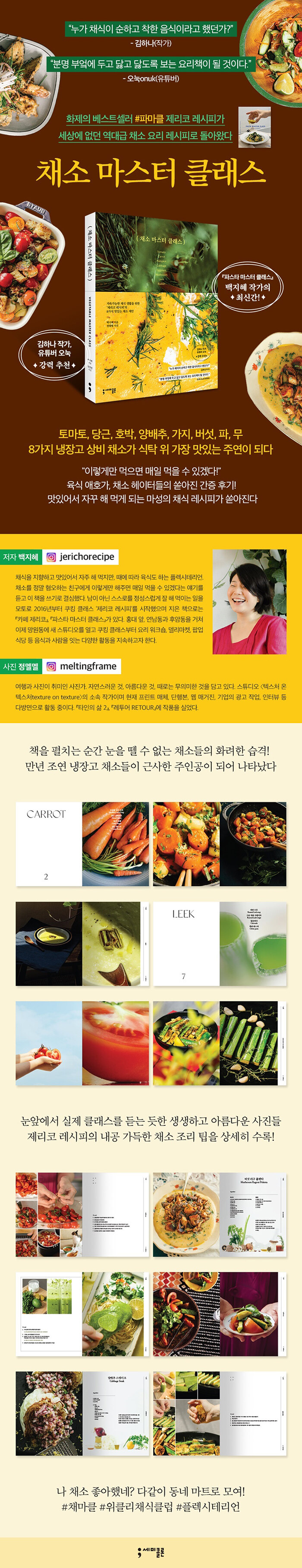 µ¿½Ã´ë °¡Àå ÁÖ¸ñ¹Þ´Â »çÁø°¡ Á¤¸á¸áÀÇ Æ¯º°ÇÑ Çù¾÷ ¶ÇÇÑ ¹Ýµå½Ã ÀÌ Ã¥À» ¼ÒÀåÇØ¾ß ÇÏ´Â ¶Ç ÇϳªÀÇ ÀÌÀ¯´Ù. Ưº°ÇÑ ½Ã¼±À¸·Î ´ã¾Æ³½ ä¼ÒµéÀÇ ¸é¸éÀÌ ÁøÇÑ ÀÜ»óÀ» ³²±â¸ç, ±âÁ¸ ¿ä¸®Ã¥¿¡¼ ½±°Ô º¸Áö ¸øÇÑ ¼¶¼¼ÇÏ°í ¾Æ¸§´Ù¿î °úÁ¤ »çÁøµé·Î ¿ì¸®°¡ »ý°¢Çß´ø ä¼Ò ¿ä¸®ÀÇ »ó½ÄÀ» 180µµ µÚÁý´Â´Ù. µ¿½Ã´ë Æ®·»µå¿¡ ±â¹ÎÇÏ°Ô ¹ß¸ÂÃç Áö±Ý ¿ì¸®¿¡°Ô ²À ÇÊ¿äÇÑ ¿ä¸®Ã¥¸¸À» ¾ö¼±ÇØ ¿Â ¼¼¹ÌÄݷп¡¼ óÀ½ Ãâ°£µÇ´Â ä½Ä ·¹½ÃÇǺÏÀ̶ó´Â Á¡µµ ÁÖ¸ñÇÒ ¸¸ÇÏ´Ù. Ãâ°£ ¼Ò½Ä¸¸À¸·Îµµ ¿¬ÀÏ SNS¿¡¼ ÈÁ¦°¡ µÉ ¸¸Å ¼ö¸¹Àº ÆÈ·Î¿ö°¡ ±â´Ù¸° ÈÁ¦ÀÇ Ã¤¼Ò ¸¶½ºÅÍ Å¬·¡½º, Áö±Ý ¹Ù·Î ¸¸³ª º¸ÀÚ.