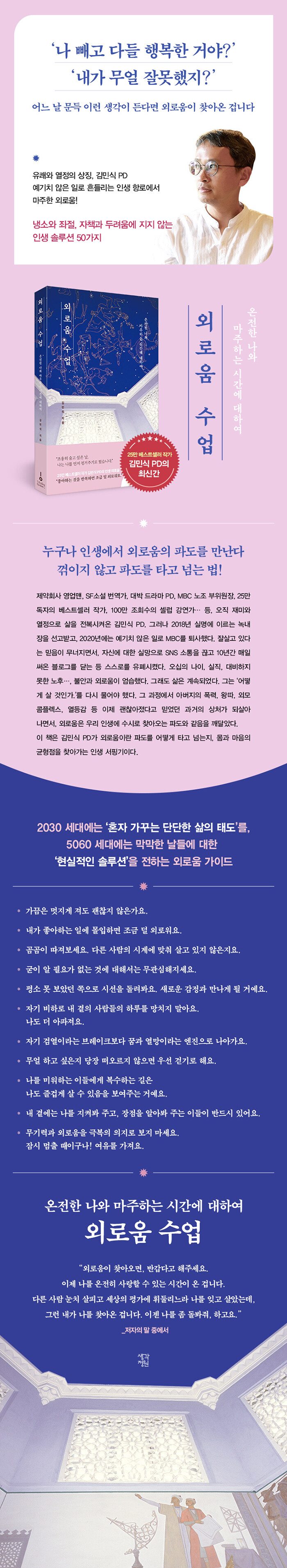 »îÀº ¼Çΰú °°´Ù. ´©±¸³ª °¢ÀÚÀÇ ¼ÇÁº¸µå À§¿¡¼ ÆÄµµ¸¦ Ÿ°í °¥ »ÓÀÌ´Ù. ÀÌ Ã¥Àº ±è¹Î½Ä PDÀÇ Àλý ¼ÇαâÀÌÀÚ »õ·Î¿î ½ÃÀÛÀ» À§ÇÑ ÀºÅð±âÀÌ´Ù. ±×°¡ ¿Ü·Î¿òÀ̶õ ÆÄµµ¸¦ ¾î¶»°Ô ³Ñ³ªµé°í Áñ±â°í ÀÖ´ÂÁö, »î¿¡¼ ÇÑ¹ß ³ª¾Æ°¡°í ±í¾îÁö´Â ÁöÇý¸¦ ´ã°í ÀÖ´Ù. ƯÈ÷ ²ÙÁØÈ÷ ¼ÒÅëÇØ ¿Â 2030 ÀþÀºÀ̵鿡°Ô´Â ¡®È¥ÀÚ °¡²Ù¾î°¡´Â ´Ü´ÜÇÑ »îÀÇ Åµµ¡¯¸¦, µ¿ ½Ã°£À» »ì¾Æ°¡´Â 5060 Áß³âµé¿¡°Ô´Â ¸·¸·ÇÑ ³¯µé¿¡ ´ëÇÑ ¡®Çö½ÇÀûÀÎ ¼Ö·ç¼Ç°ú µûµíÇÑ À§·Î¡¯¸¦ ÀüÇÑ´Ù.