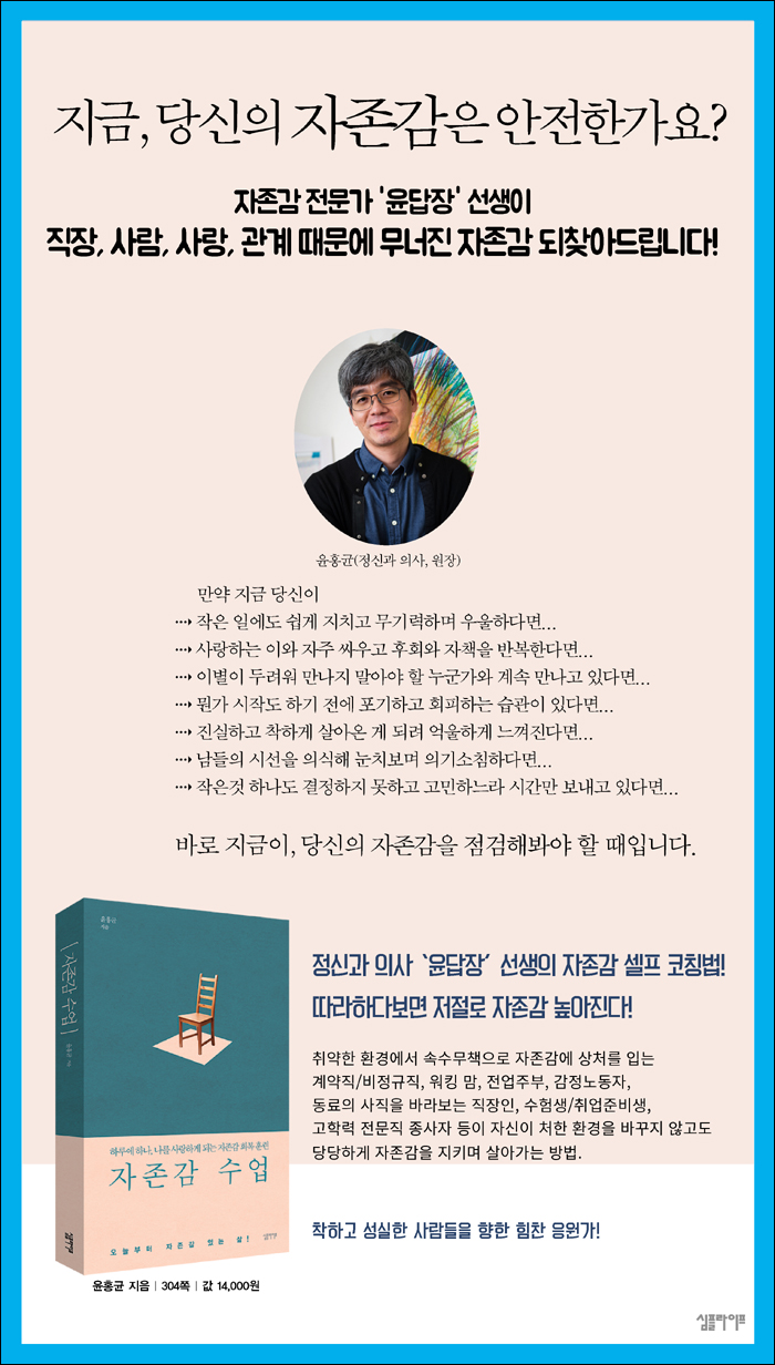 ÀÚÁ¸°¨ Àü¹®°¡ÀÌÀÚ Á¤½Å°ú ÀÇ»çÀÎ À±È«±Õ ¿øÀåÀÌ 2³â ³Ñ°Ô ½ÉÇ÷À» ±â¿ï¿© ¾´ Ã¥À¸·Î, ÀÚÁ¸°¨ÀÌ ¿ì¸® »î¿¡ ¹ÌÄ¡´Â ¿µÇâÀ» Ä£ÀýÇÏ°Ô ¾Ë·ÁÁÖ°í, ÀÚÁ¸°¨À» ²ø¾î¿Ã¸®´Â ½ÇÁúÀûÀÎ ¹æ¹ýÀ» ¾Ë·ÁÁִ å. ³ôÀº ÀÚÁ¸°¨À» °®°í ½ÍÁö¸¸ ¹æ¹ýÀ» ¸ð¸£´Â »ç¶÷, ³·Àº ÀÚÁ¸°¨ ¶§¹®¿¡ ³»¸éÀÇ ºÒÈ¿Í °¥µîÀ» °Þ°í ÀÖ´Â À̵éÀÌ °Ç°ÇÑ ÀÚÁ¸°¨À» ȸº¹Çϵµ·Ï µ½´Â´Ù. ³·Àº ÀÚÁ¸°¨ ¶§¹®¿¡ ¹æÈ²ÇÏ´ø ÇÊÀÚÀÇ °æÇè°ú »ó´ã »ç·Ê¸¦ Áø¼ÖÇÏ°Ô ³ì¿©³½ ±Û¿¡, ¼¶¼¼Çϸ鼵µ ³ÃöÇÑ ÇØ¼®À» °çµé¿© ¡®´ëÁß¼º°ú Àü¹®¼ºÀÌ Àß °áÇÕµÈ, ¹Ðµµ ³ô´Â ÄÁÅÙÃ÷¡¯¶ó´Â Æò°¡¸¦ ¹Þ°í ÀÖ´Ù.