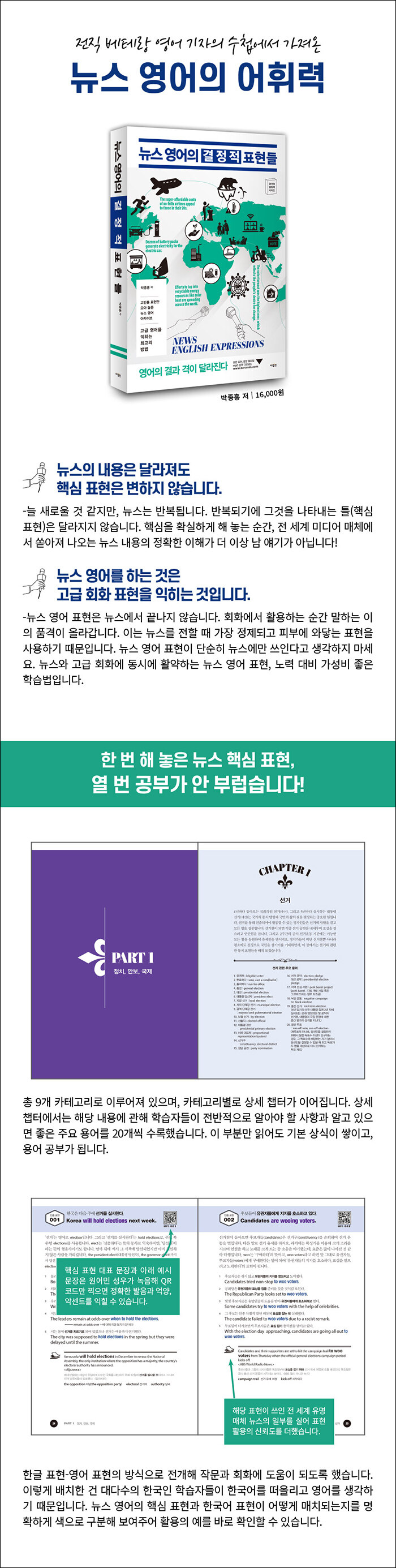 ¹Ýº¹µÇ¾î ¾²ÀÌ´Â ÆÐÅϸ¸ È®½ÇÈ÷ ÇØ³õÀ¸¸é Àü ¼¼°è ¾îµð¼ ³ª¿À´Â ¿µ¾î ´º½ºµç º¸°í µè°í ÀÌÇØÇÒ ¼ö ÀÖ½À´Ï´Ù. ±×·¸±â ¶§¹®¿¡ ´º½º ¿µ¾î¸¸Å ³ë·Â ´ëºñ ¼º°ú°¡ ³ôÀº °Íµµ ¾ø½À´Ï´Ù. ÀÌ·± ¹Ýº¹µÇ´Â Ç¥ÇöÀÇ Ãâó°¡ 23³â °æ·ÂÀÇ º£Å×¶û ¿µ¾î ±âÀÚ¸é ´õÇÒ ³ªÀ§ ¾ø°ÚÁÒ? ¡º´º½º ¿µ¾îÀÇ °áÁ¤Àû Ç¥Çöµé¡»Àº Ä«Å×°í¸®º°·Î °¡Àå ¸¹ÀÌ ¾²À̰í Á¢ÇÒ ¼ö Àִ ǥÇöµé¸¸ ¾ö¼±Ç߱⿡ µ¶ÀÚµéÀÇ °¡¼ººñ¸¦ ´õ ³ô¿© ÁÝ´Ï´Ù.