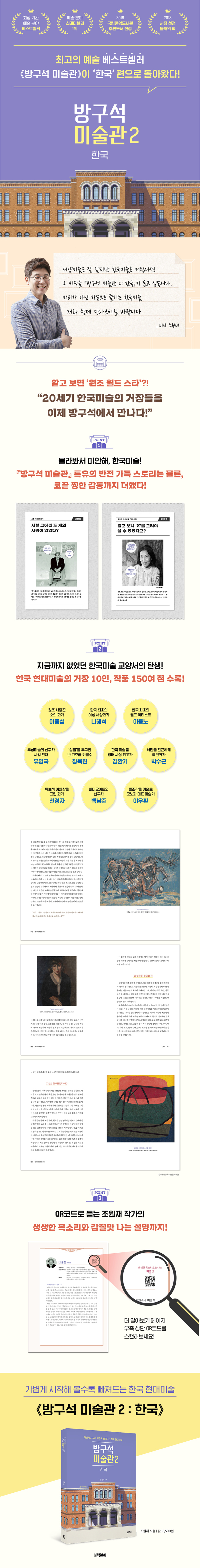 ¹Ì¼ú°èÀÇ ¿øÁ¶ ¿ùµåŬ·¡½º ÀÌÀÀ³ë, ¡®¿©ÀÚµµ »ç¶÷ÀÌ´Ù¡¯¸¦ ¿ÜÄ£ ½Å¿©¼º ³ªÇý¼®, Çѱ¹ ¹Ì¼úǰ °æ¸Å »ç»ó 132¾ïÀ̶ó´Â ÃÖ°í°¡¸¦ ±â·ÏÇÑ ±èȯ±â, ¿Â°® ÇØÇÁ´×°ú ÆÛÆ÷¸Õ½ºÀÇ ´ÞÀÎÀ̾ú´ø ºñµð¿À¾ÆÆ®ÀÇ ¼±±¸ÀÚ ¹é³²ÁرîÁö! Çѱ¹ Çö´ë¹Ì¼úÀ» ´ëÇ¥ÇÏ´Â ¿¹¼ú°¡µéÀÇ »î°ú ÀÛǰ¼¼°è¸¦ Áý¿äÇÏ°Ô ÃßÀûÇØ ƯÀ¯ÀÇ ÀçÄ¡ ³ÑÄ¡´Â ½ºÅ丮ÅÚ¸µÀ¸·Î Èï¹ÌÁøÁøÇÏ°Ô Ç®¾î³»´Â °ÍÀº ¹°·Ð, ÃÑ 150¿© Á¡ÀÇ µµÆÇÀ» ¼ö·ÏÇØ ±× ¾î¶² Çѱ¹¹Ì¼ú Ã¥º¸´Ùµµ ´Ùä·Ó°í dz¼ºÇÑ º¼°Å¸®¸¦ ¼±»çÇÑ´Ù. ¶ÇÇÑ 1ź¿¡ À̾î À̹ø 2ź¿¡¼µµ ÆÌij½ºÆ® [¹æ±¸¼® ¹Ì¼ú°ü]ÀÇ QRÄڵ带 ½Ç¾î »ý»ýÇÑ À̾߱⸦ Á÷Á¢ µéÀ» ¼ö ÀÖ°Ô Çß´Ù. °íÈå, ÇÇÄ«¼Ò, ¸¶³×´Â Àͼ÷ÇÏÁö¸¸ Çѱ¹È°¡ÀÇ À̸§Àº ¼Âµµ ´ë±â Èûµé´Ù¸é, ÀÌÁß¼· ÇÏ¸é ¡®¼Ò¡¯, ¹Ú¼ö±Ù ÇÏ¸é ¡®³ª¹«¡¯¿Í ¡®¿©ÀΡ¯ Á¤µµ¹Û¿¡ ¶°¿Ã¸®Áö ¸øÇÏ´Â »ç¶÷À̶ó¸é ¸Á¼³ÀÌÁö ¸»°í ÀÌ Ã¥ ¡º¹æ±¸¼® ¹Ì¼ú°ü 2 : Çѱ¹¡»À» ÆîÃĺ¸ÀÚ. °¡º±°Ô ½ÃÀÛÇØ º¼¼ö·Ï ºüÁ®µå´Â Çѱ¹¹Ì¼úÀÇ ¸Å·ÂÀÌ Áö±Ý ´ç½ÅÀ» ±â´Ù¸®°í ÀÖ´Ù.