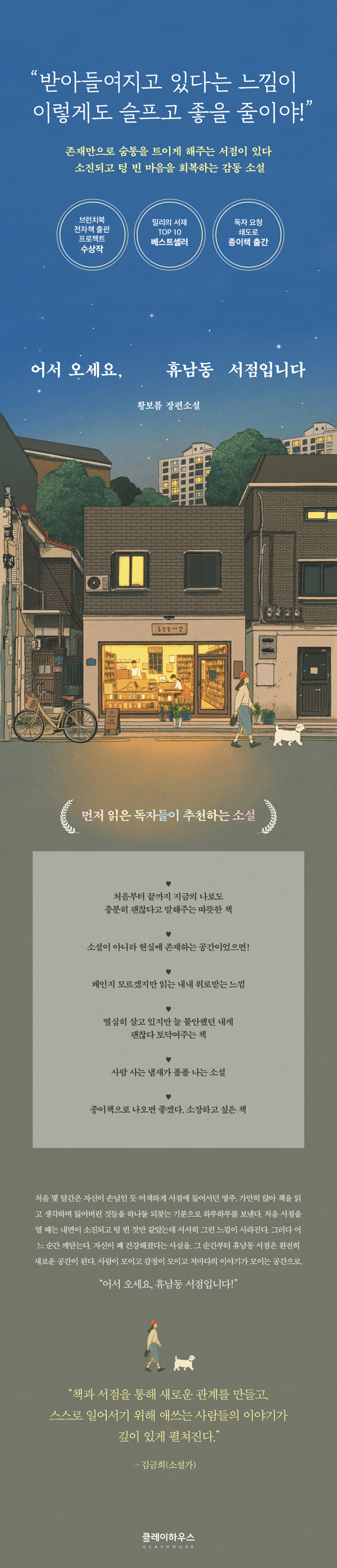 ¹Ù¸®½ºÅ¸ ¹ÎÁØ, ·Î½ºÆÃ ¾÷ü ´ëÇ¥ Áö¹Ì, ÀÛ°¡ ½Â¿ì, ´Ü°ñ¼Õ´Ô Á¤¼, »ç´Â °Ô Àç¹Ì¾ø´Â °íµîÇлý ¹Îö°ú ±×ÀÇ ¾ö¸¶ ÈñÁÖ µî Å©°í ÀÛÀº »óó¿Í Èñ¸ÁÀ» °¡Áø »ç¶÷µéÀÌ ÈÞ³²µ¿ ¼Á¡À̶ó´Â °ø°£À» ¾È½Äó·Î »ï¾Æ ÇÔ²² »ì¾Æ°¡´Â ¹ýÀ» ¹è¿î´Ù. ¡º¾î¼ ¿À¼¼¿ä, ÈÞ³²µ¿ ¼Á¡ÀÔ´Ï´Ù¡»´Â ¿ì¸®°¡ ÀÒ¾î¹ö¸° ä »ì°í ÀÖÁö¸¸ »ç´Â µ¥ ²À ÇÊ¿äÇÑ °ÍµéÀÌ °¡µæÇÑ Ã¥ÀÌ´Ù. ¹è·Á¿Í Ä£Àý, °Å¸®¸¦ Áöų ÁÙ ¾Æ´Â »ç¶÷µé³¢¸®ÀÇ ¿ìÁ¤°ú ´À½¼ÇÑ ¿¬´ë, Áø¼ÖÇÏ°í ±íÀÌ ÀÖ´Â ´ëÈ µî. Ãâ°£ Áï½Ã ÀüÀÚÃ¥ TOP 10 º£½ºÆ®¼¿·¯¿¡ ¿À¸£¸ç ¼ö¸¹Àº µ¶ÀÚÀÇ Âù»ç¸¦ ¹ÞÀº ¼Ò¼³ÀÌ µ¶ÀÚµéÀÇ °·ÂÇÑ ¿äûÀ¸·Î ¸¶Ä§³» Á¾ÀÌÃ¥À¸·Î ´Ù½Ã ž´Ù.