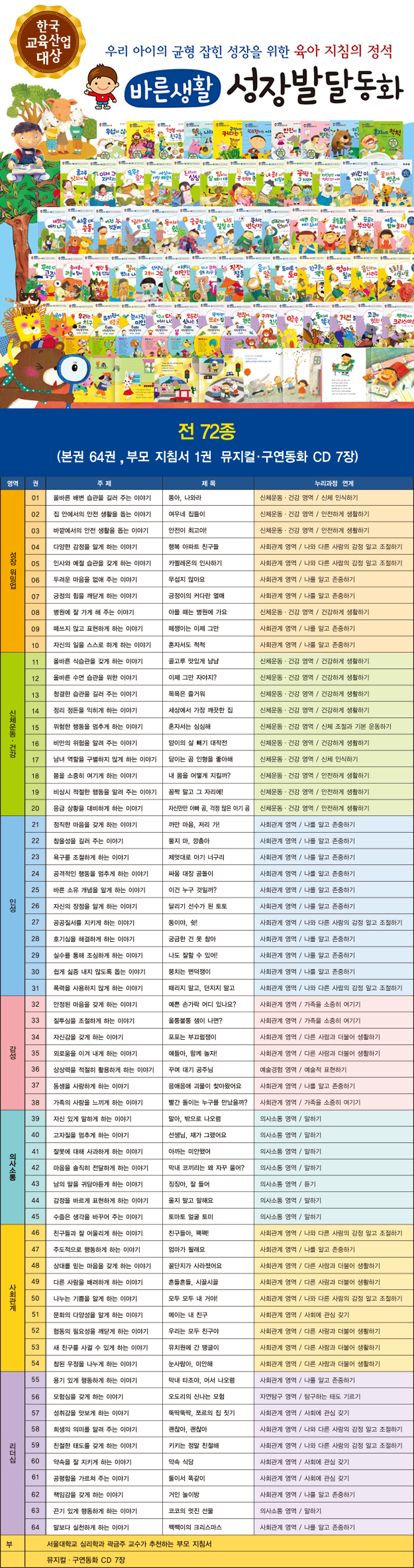 [ÅëÅ«¼¼»ó] ¹Ù¸¥»ýȰ ¼ºÀå¹ß´Þµ¿È­ (º»±Ç64±Ç+Áöħ¼­1±Ç+CD7Àå / Àü72Á¾)