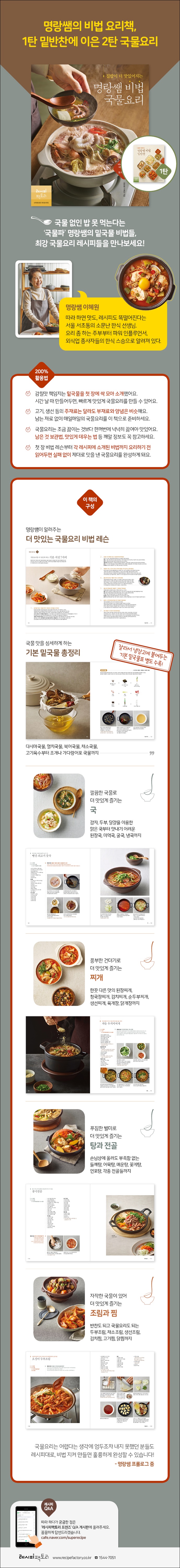 À̹ø Ã¥¿¡´Â ±¹, Âî°³, Àü°ñ, ÅÁ µî Çѱ¹ÀÎÀÇ ¹ä»ó¿¡¼ »©³õÀ» ¼ö ¾ø´Â ±¹¹°¿ä¸®¸¦ ´Ù·ç°í ÀÖ´Ù. 1ź°ú ¸¶Âù°¡Áö·Î ±¸Çϱ⠽¬¿î Àç·á¿Í ¾ç³äÀ¸·Î ÇѲý ´Ù¸¥ ¸ÀÀÇ ±¹¹°¿ä¸® ¸¸µå´Â ºñ¹ýµµ ¼Ò°³Çϰí ÀÖ´Ù. ƯÈ÷ ¸í¶û½ÜÀÇ '¹Ø±¹¹°'Àº ±¹¹°ÀÌ ÇÊ¿äÇÑ ¸ðµç ÇѽĿ¡ µÎ·ç Ȱ¿ëÇϱâ Âü ÁÁÀºµ¥, ¾ðÁ¦µç ¼Õ½±°Ô µû¶ó ¸¸µé ¼ö ÀÖµµ·Ï ³ÃÀå°í¿¡ ºÙÀÌ´Â ºñ¹ý ¹Ø±¹¹° Ç¥±îÁö Ã¥ µÚ¿¡ ¼ö·ÏÇß´Ù.